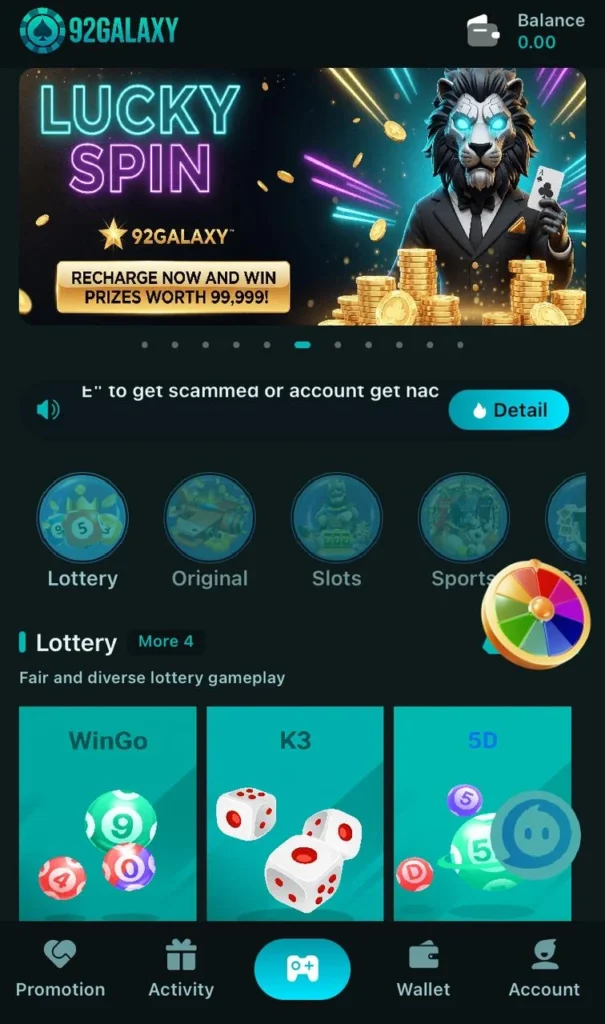 92 Galaxy Game is an online gaming platform where users can play multiple types of games and earn real money. It has a wide variety of casino-inspired options, including slots, lottery, card games, fishing games, and sports betting.