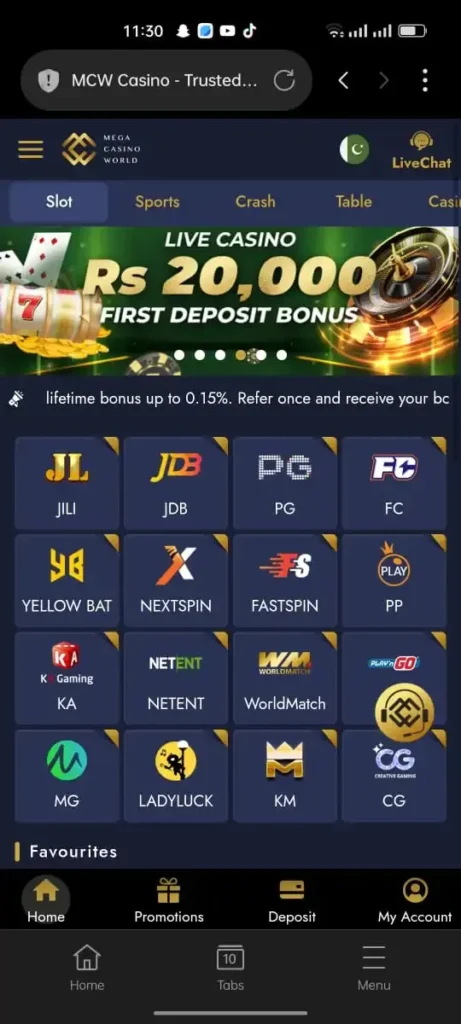 Betting on cricket, football, and other trending sports is available. With Pakistan’s love for cricket, this category attracts thousands of users daily.