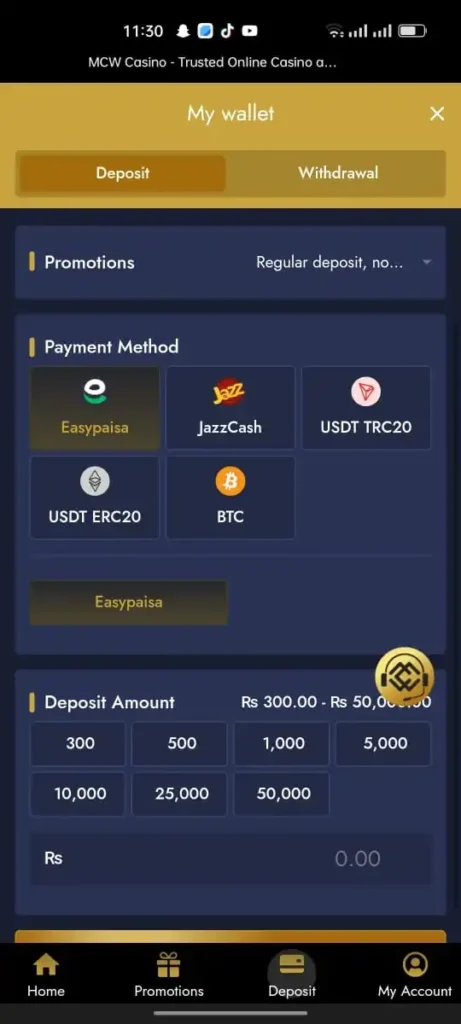 Withdraw via Easypaisa or JazzCash for secure transfers.