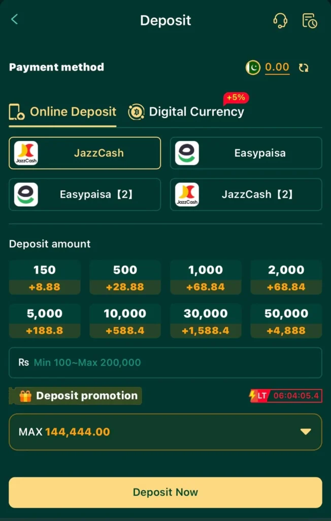 Depositing funds in E8 Game is simple and fast. Firstly, log in to your account. Secondly, click on the “Deposit” section in the main menu. Then, choose your preferred method such as Easypaisa, JazzCash, or bank transfer. Next, enter the desired amount and confirm the details. Finally, the payment is processed instantly, and funds appear in your balance.