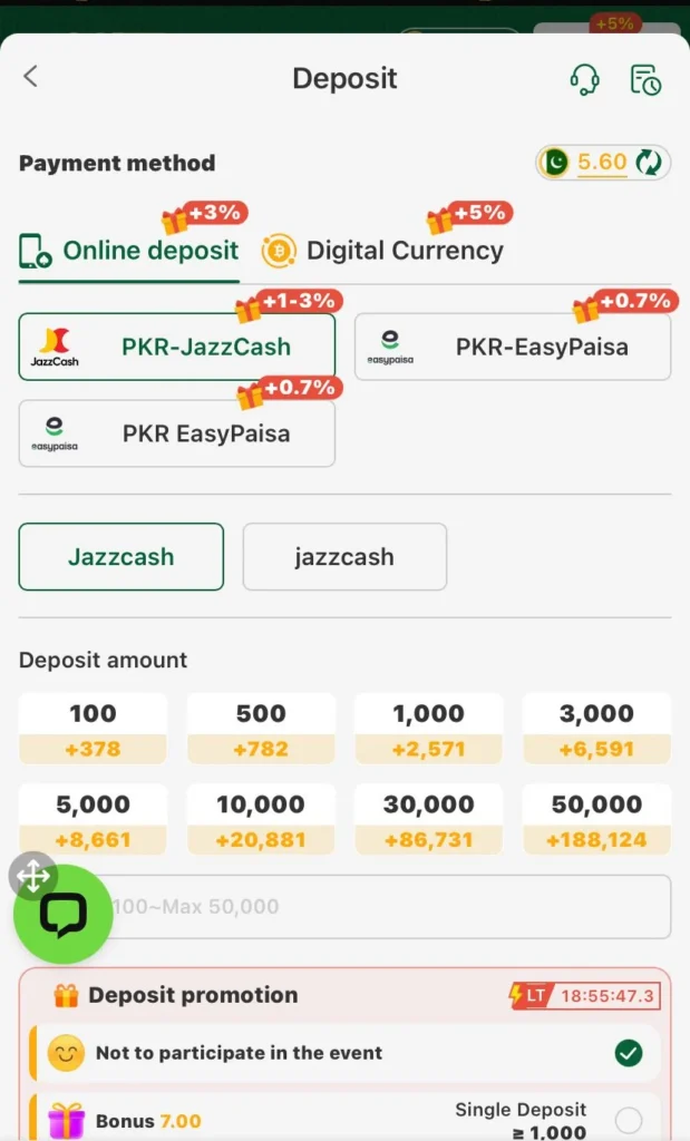 Deposit Process (Easypaisa & JazzCash):