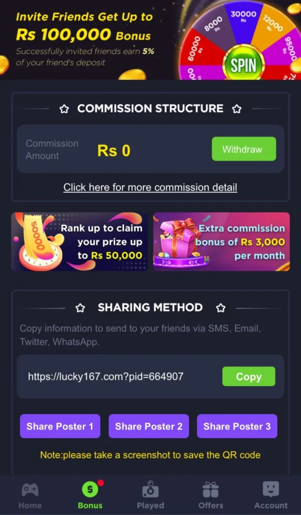 Lucky167 Game is an online gaming and earning platform that combines casino-style entertainment with real-money rewards in Lucky167 Game. It allows users in Pakistan to play various games like slots, card games, fishing games, lotteries, and sports betting, all from one secure mobile app.