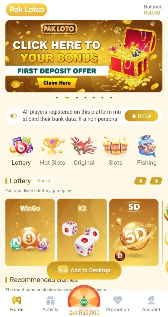 Pak Lotoo Game offers attractive bonuses and promotions to keep users engaged: