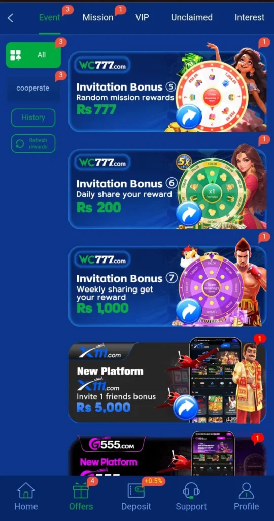 Another exciting feature of wc777 Game is its referral reward system. When you invite your friends to play through your referral link, you earn a percentage of their deposits or winnings. This feature allows players to create a passive income stream simply by sharing the app with others.