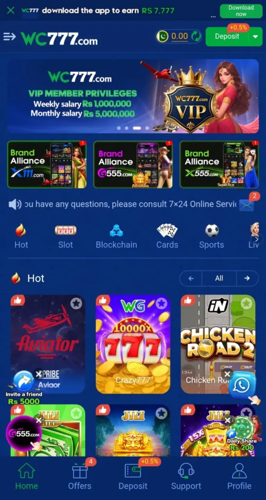Unlike most casual gaming apps, wc777 is not just for entertainment it’s a real money earning platform. Players can deposit small amounts, play various games, and withdraw their winnings easily. Whether you love card games, slots, or prediction based challenges, wc777 Game APK has something for everyone.
