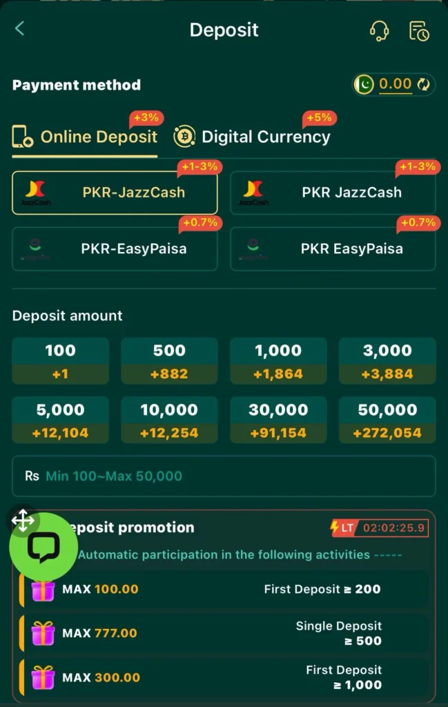 Depositing funds is convenient since Easypaisa and JazzCash are fully supported.