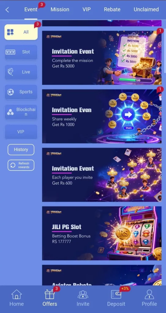 You can invite friends to join the Y444 vip game using your referral link. When they sign up and play, you earn bonus rewards or cash. It’s a great way to build your balance while helping others discover the fun.